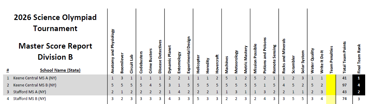 ALL TEAMS PARTICPATING IN NEW YORK STATE SCIENCE OLYMPIAD REGIONAL TOURNAMENTS