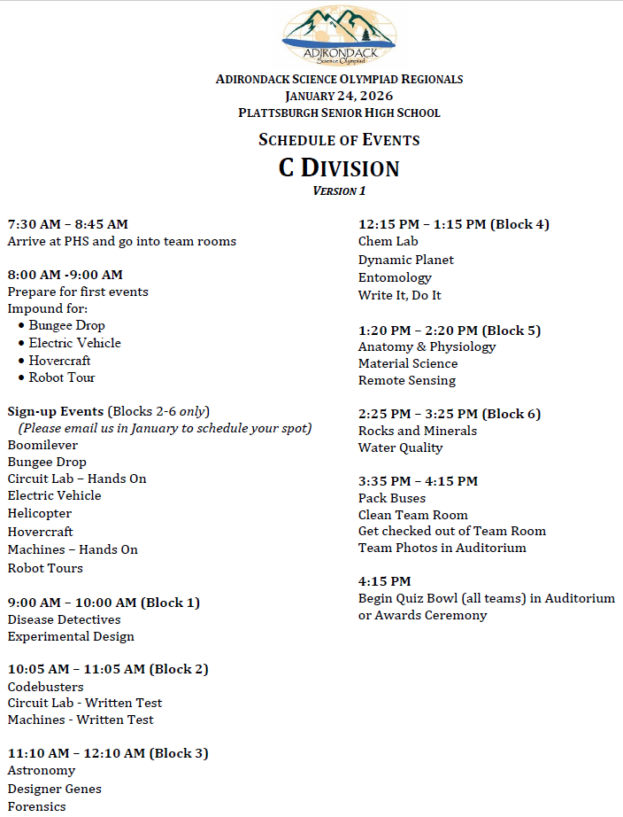 ALL TEAMS PARTICPATING IN NEW YORK STATE SCIENCE OLYMPIAD REGIONAL TOURNAMENTS