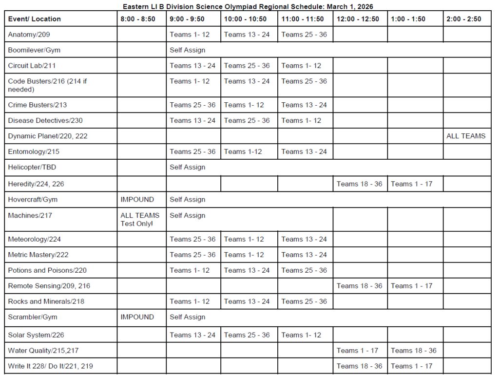 ALL TEAMS PARTICPATING IN NEW YORK STATE SCIENCE OLYMPIAD REGIONAL TOURNAMENTS