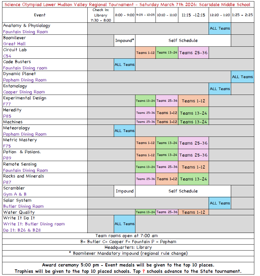 ALL TEAMS PARTICPATING IN NEW YORK STATE SCIENCE OLYMPIAD REGIONAL TOURNAMENTS