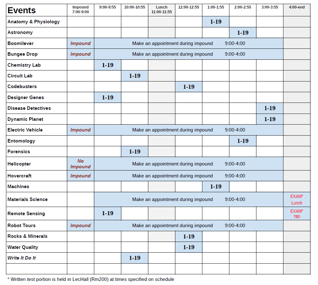 ALL TEAMS PARTICPATING IN NEW YORK STATE SCIENCE OLYMPIAD REGIONAL TOURNAMENTS