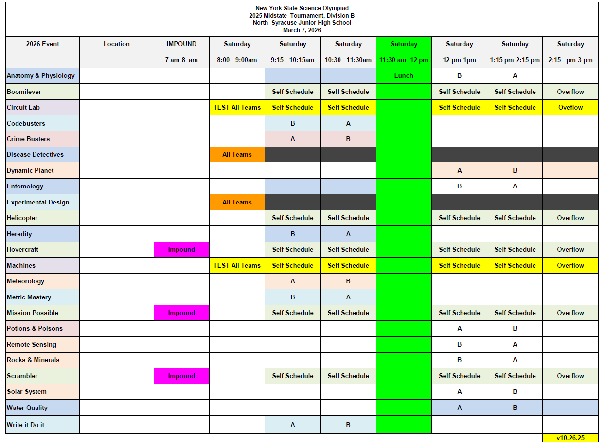 ALL TEAMS PARTICPATING IN NEW YORK STATE SCIENCE OLYMPIAD REGIONAL TOURNAMENTS