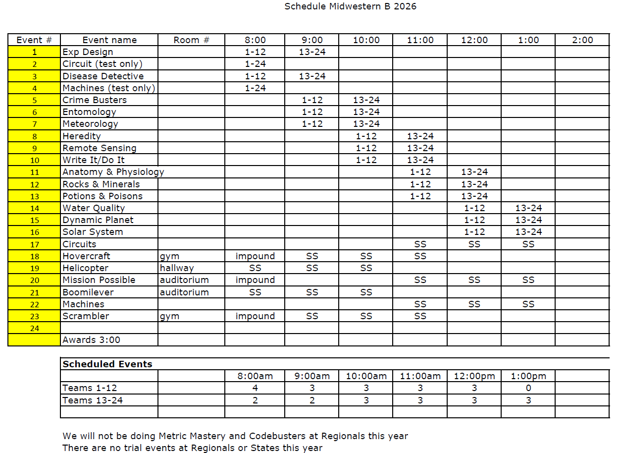 ALL TEAMS PARTICPATING IN NEW YORK STATE SCIENCE OLYMPIAD REGIONAL TOURNAMENTS