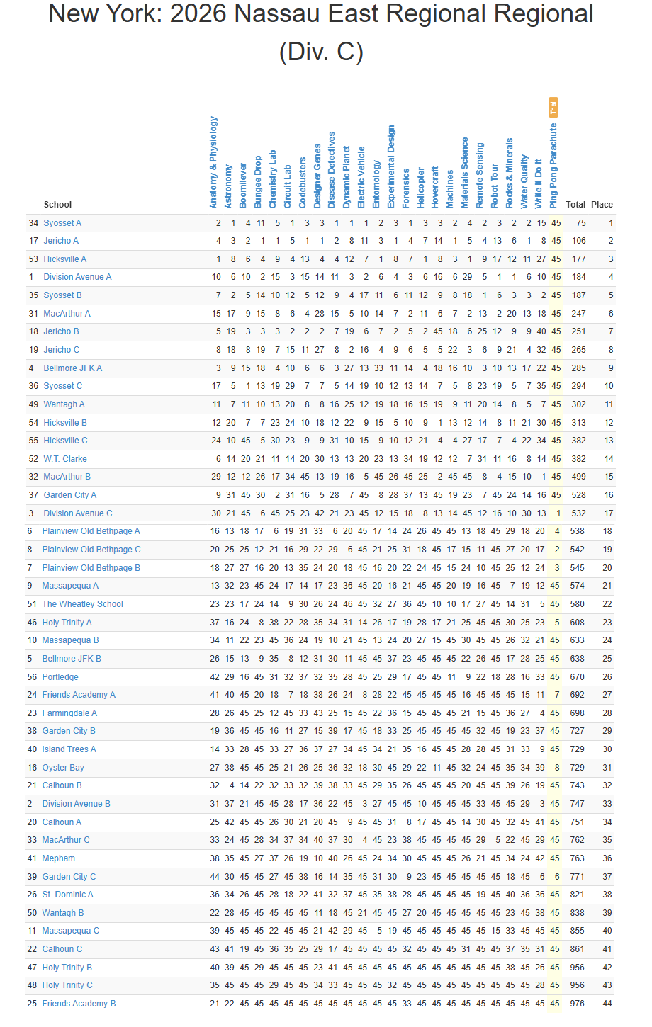 ALL TEAMS PARTICPATING IN NEW YORK STATE SCIENCE OLYMPIAD REGIONAL TOURNAMENTS