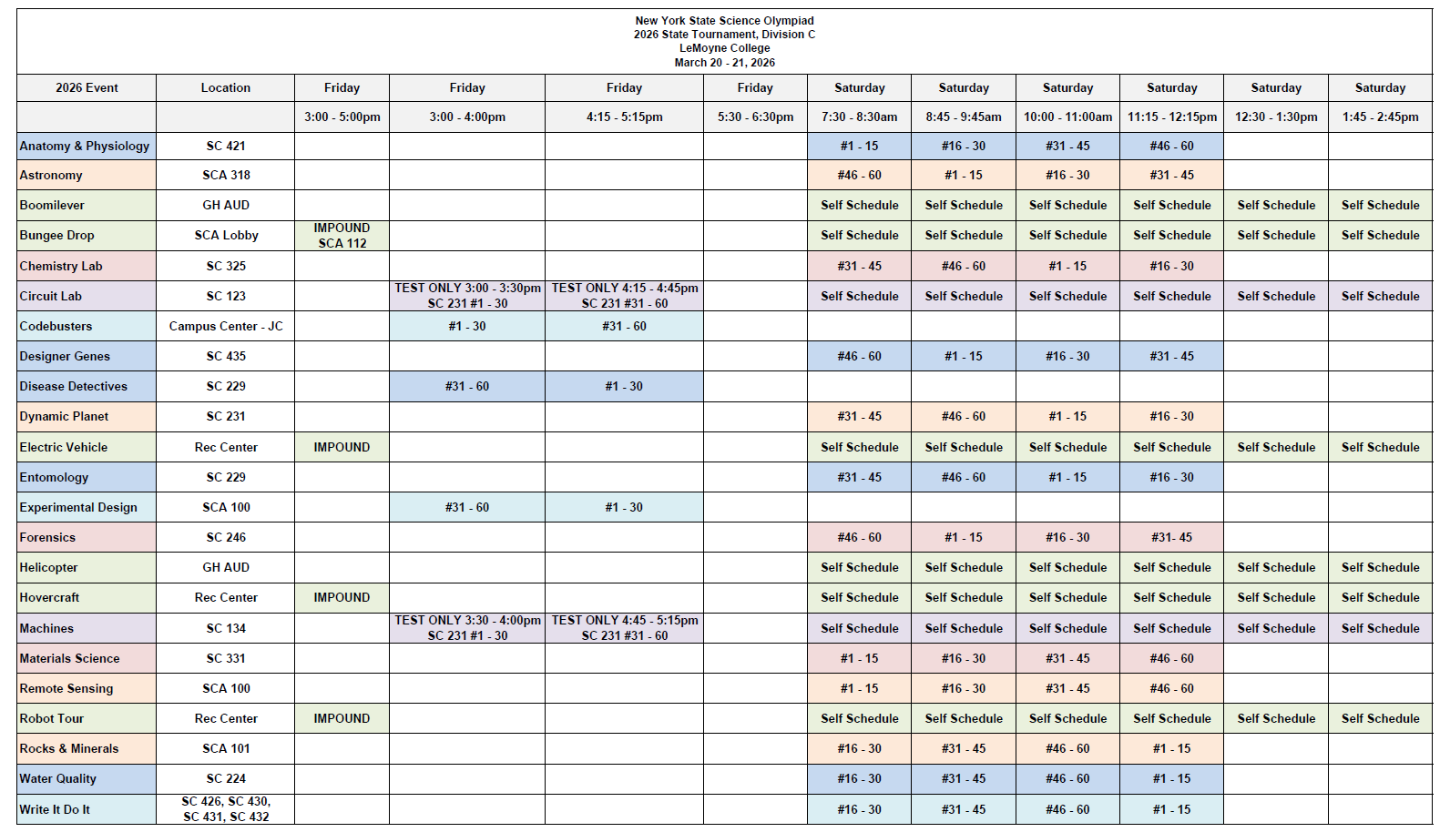 Tournament Schedules